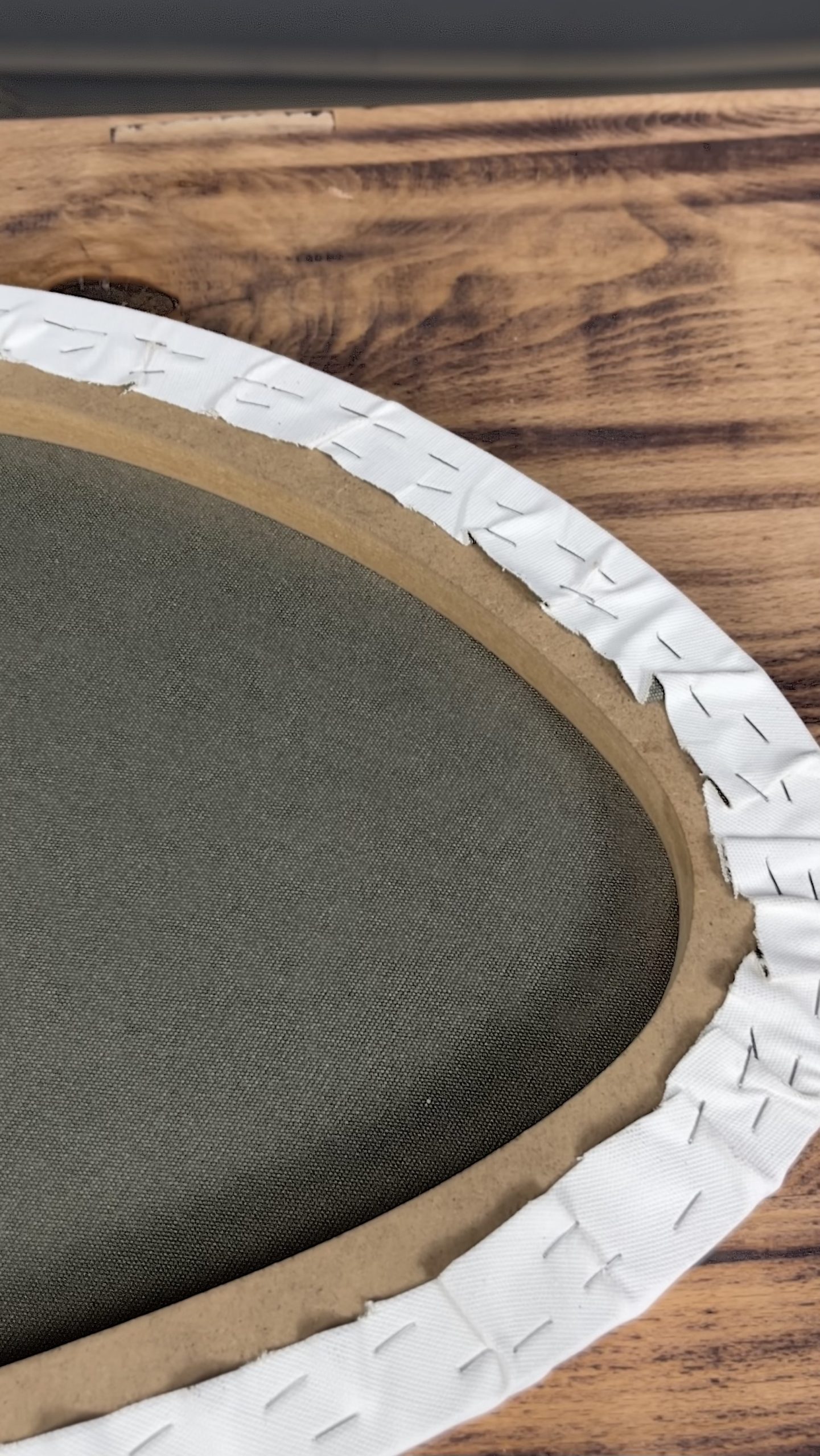 Kanvas kumaş, şaseye zımbalanmış şekilde sabitlenir. Bu yöntem, uzun ömürlü ve dayanıklı bir yapı sağlar.